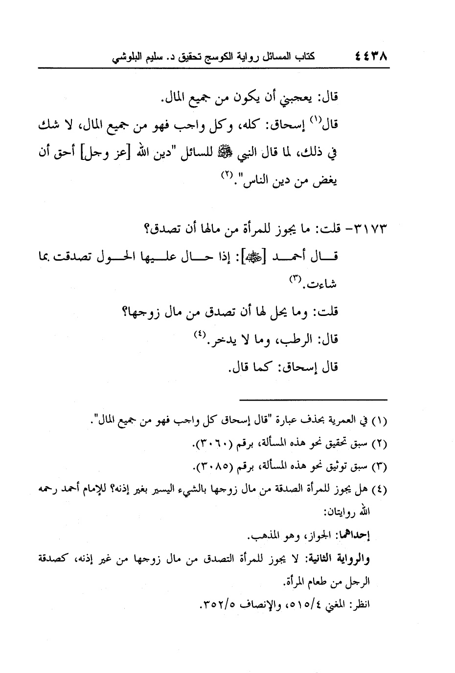 1 في العمرية بحذف عبارة "قال إسحاق كل واجب فهو من جميع المال".