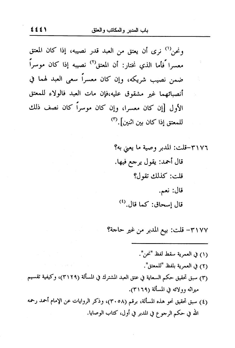 3 سبق تحقيق حكم السعاية في عتق العبد المشترك في المسألة (3129) ، وكيفية تقسيم ميراثه وولائه في المسألة (3169) .