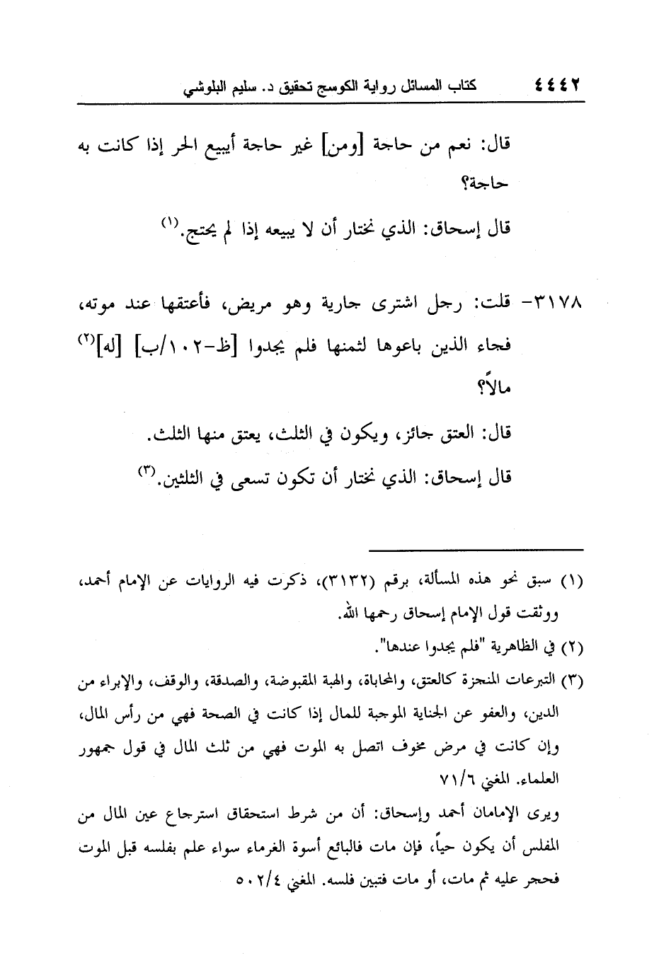 قال إسحاق: الذي نختار أن تكون تسعى في الثلثين.3