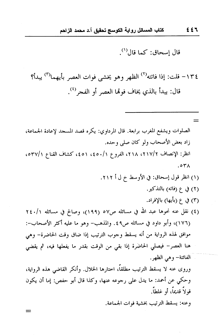 1 انظر قول إسحاق: في الأوسط خ ل أ 212.