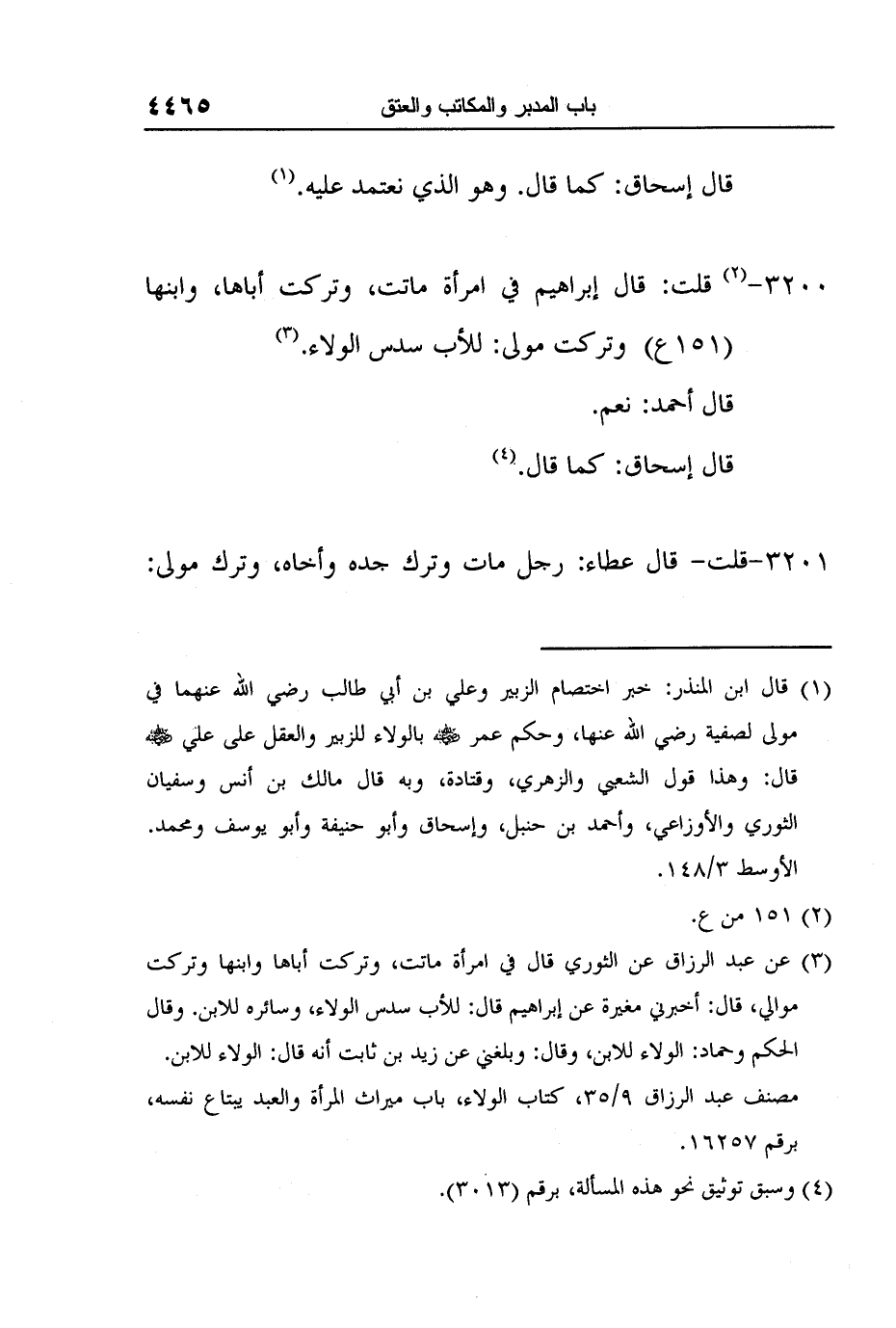 [3200-] 2 قلت: قال إبراهيم في امرأة ماتت، وتركت أباها، وابنها (151ع) وتركت مولى: للأب سدس الولاء.3