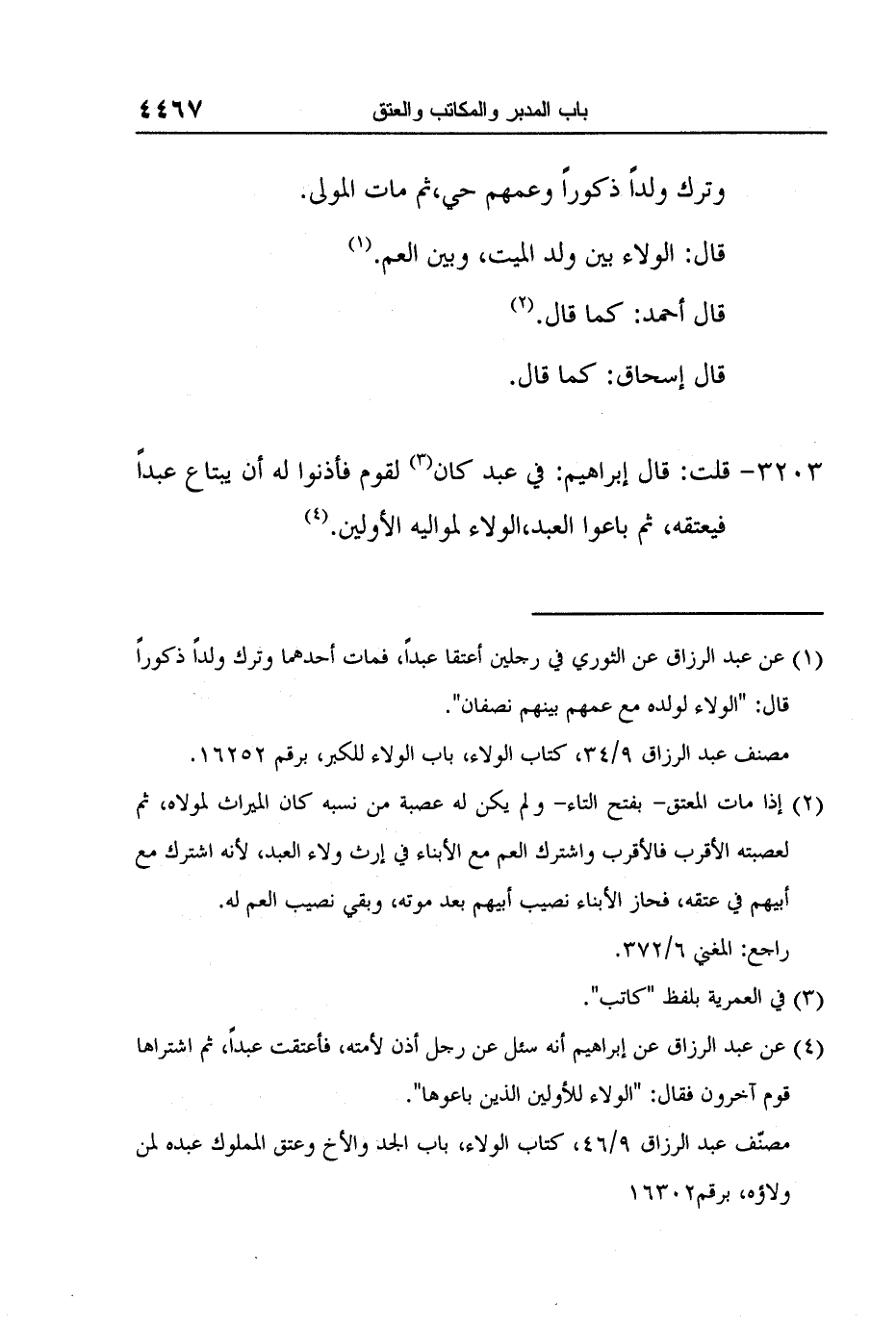 مصنّف عبد الرزاق 9/46، كتاب الولاء، باب الجد والأخ وعتق المملوك عبده لمن ولاؤه، برقم16302