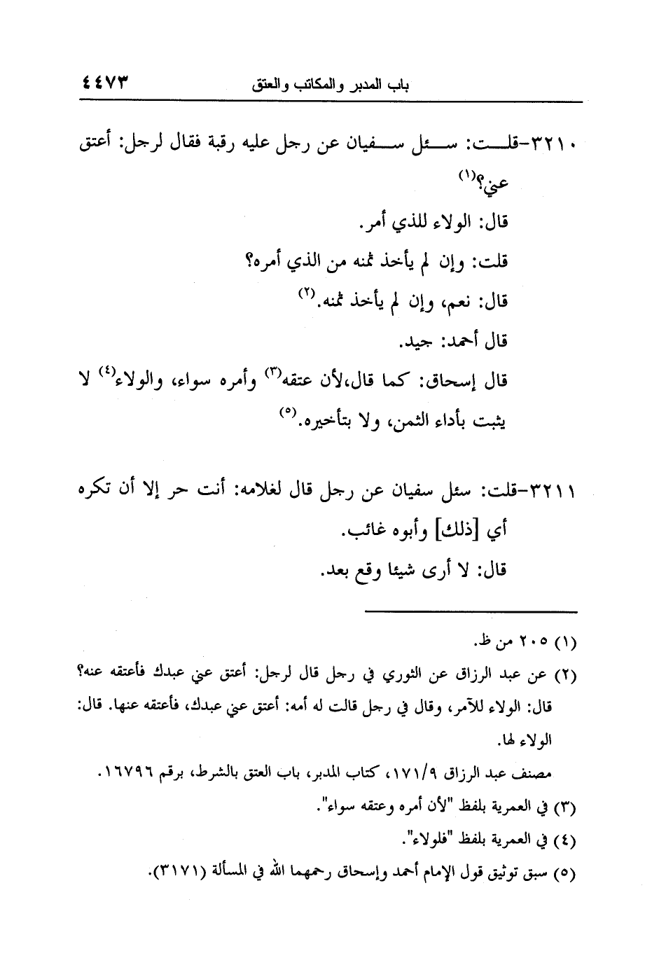 [3211-] قلت: سئل سفيان عن رجل قال لغلامه: أنت حر إلا أن تكره أي [ذلك] وأبوه غائب.