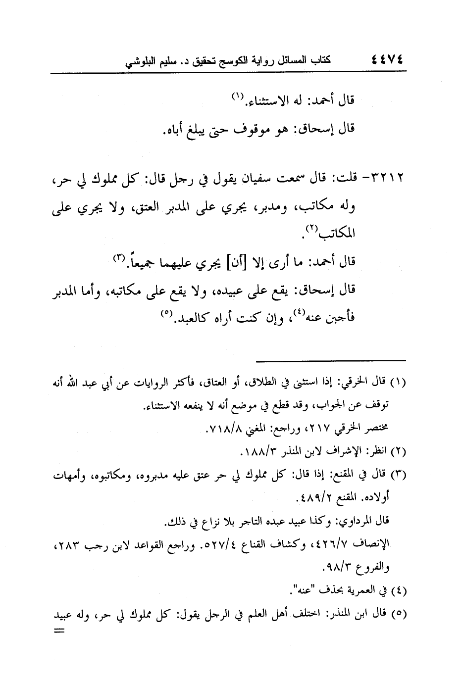 قال إسحاق: يقع على عبيده، ولا يقع على مكاتبه، وأما المدبر فأجبن عنه4، وإن كنت أراه كالعبد.5