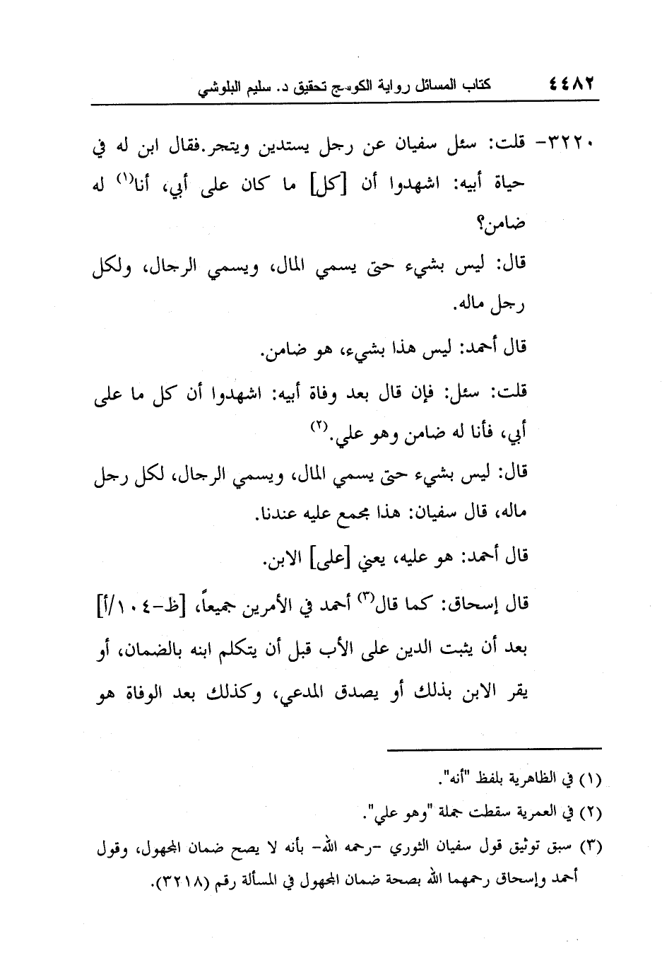 3 سبق توثيق قول سفيان الثوري -رحمه الله- بأنه لا يصح ضمان المجهول، وقول أحمد وإسحاق رحمهما الله بصحة ضمان المجهول في المسألة رقم (3218) .