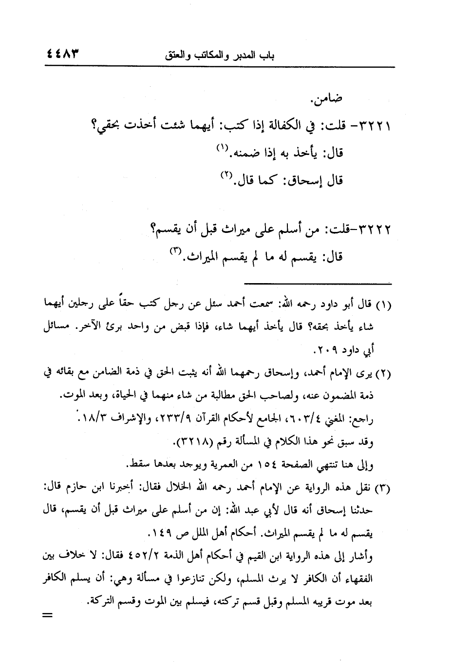 3 نقل هذه الرواية عن الإمام أحمد رحمه الله الخلال فقال: أخبرنا ابن حازم قال: حدثنا إسحاق أنه قال لأبي عبد الله: إن من أسلم على ميراث قبل أن يقسم, قال يقسم له ما لم يقسم الميراث. أحكام أهل الملل ص 149.