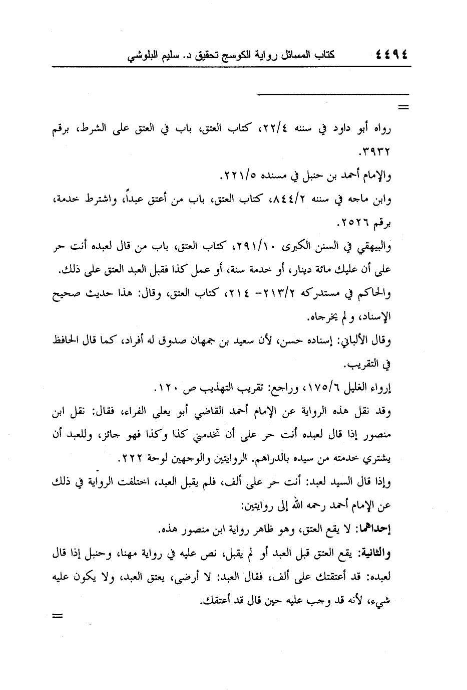 وإذا قال السيد لعبد: أنت حر على ألف، فلم يقبل العبد، اختلفت الرواية في ذلك عن الإمام أحمد رحمه الله إلى روايتين: