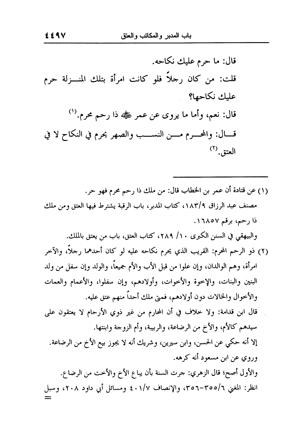 1 عن قتادة أن عمر بن الخطاب قال: من ملك ذا رحم محرم فهو حر.