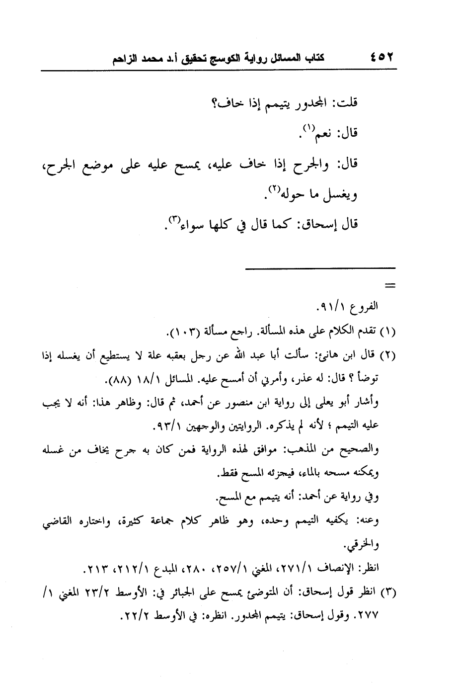 3 انظر قول إسحاق: أن المتوضئ يمسح على الجبائر في: الأوسط 2/23 المغني 1/277. وقول إسحاق: يتيمم المجدور. انظره: في الأوسط 2/22.