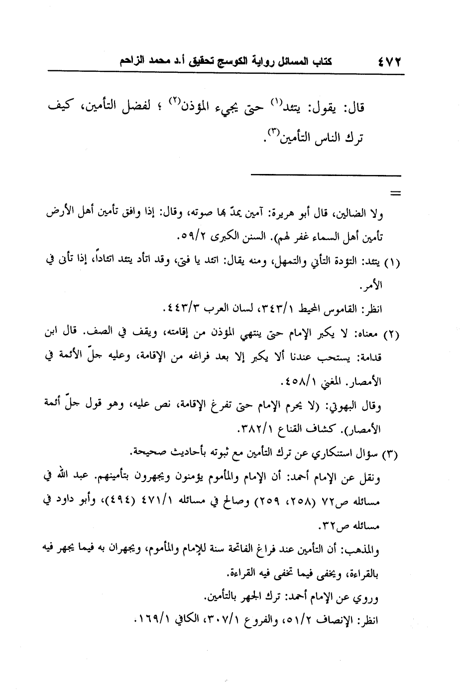 ونقل عن الإمام أحمد: أن الإمام والمأموم يؤمنون ويجهرون بتأمينهم. عبد الله في مسائله ص72 (258، 259) وصالح في مسائله 1/471 (494) ، وأبو داود في مسائله ص32.