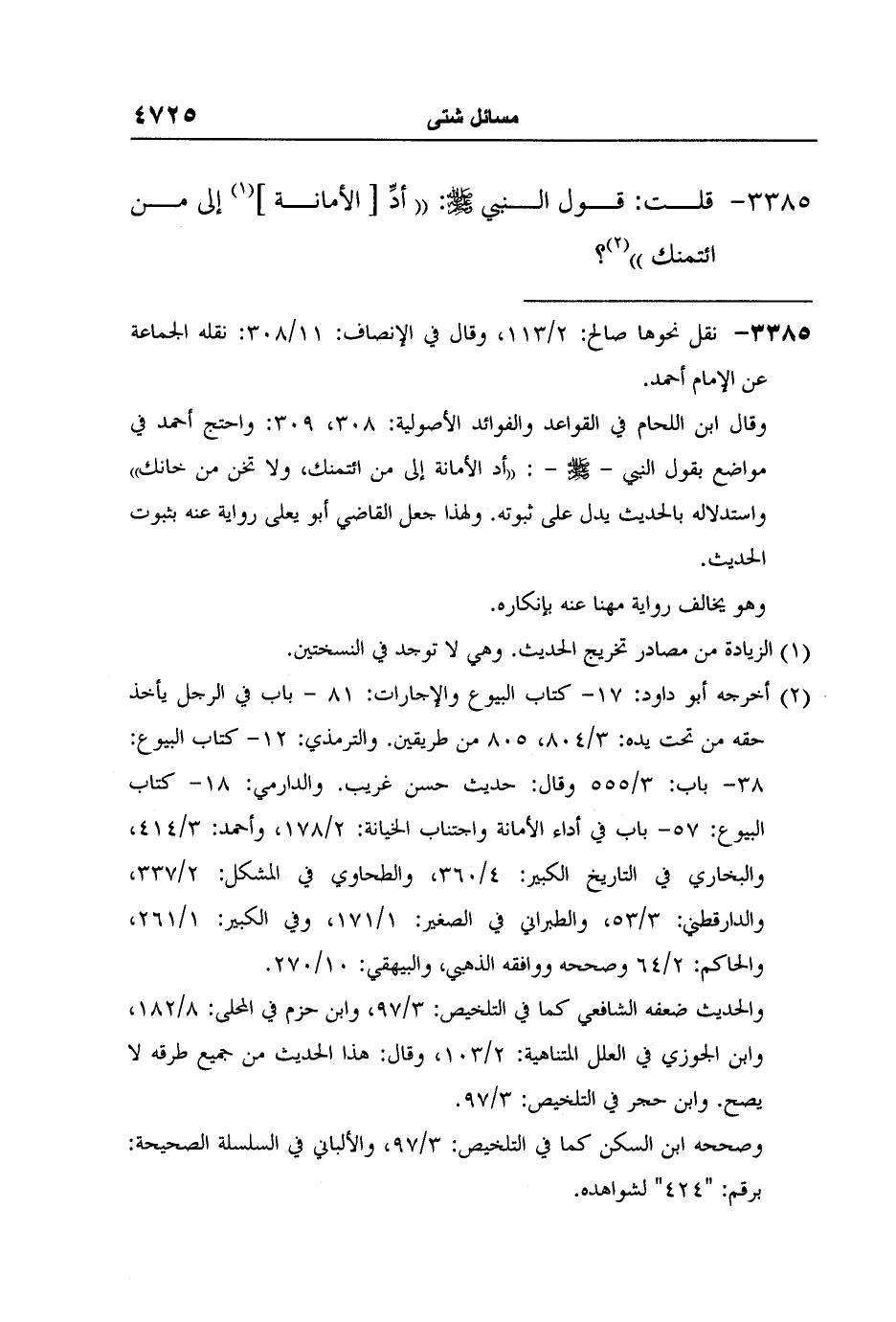 [3385-*] قلت: قول النبي صلى الله عليه وسلم: "أدِّ [الأمانة] 1 إلى من ائتمنك"2؟