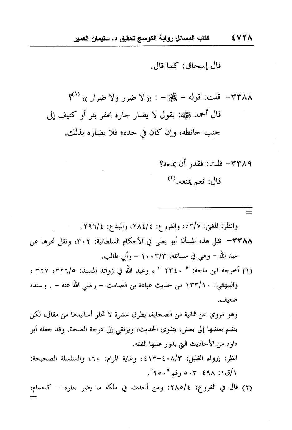 [3388-*] نقل هذه المسألة أبو يعلى في الأحكام السلطانية: 302، ونقل نحوها عن عبد الله - وهي في مسائله: 3/1003 - وأبي طالب.