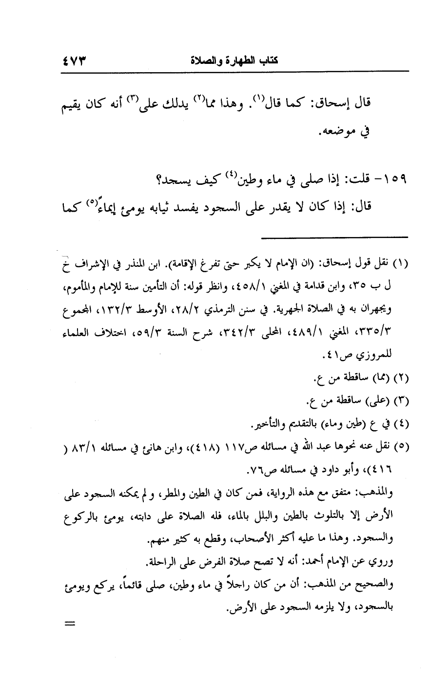 1 نقل قول إسحاق: (ان الإمام لا يكبر حتى تفرغ الإقامة) . ابن المنذر في الإشراف خ ل ب 35، وابن قدامة في المغني 1/458، وانظر قوله: أن التأمين سنة للإمام والمأموم، ويجهران به في الصلاة الجهرية. في سنن الترمذي 2/28، الأوسط 3/132، المجموع 3/335، المغني 1/489، المحلى 3/342، شرح السنة 3/59، اختلاف العلماء للمروزي ص41.