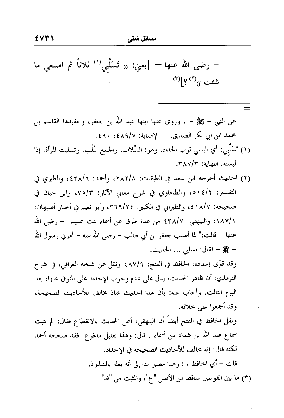 - رضى الله عنها – [يعني: "تَسَلَّبِي1 ثلاثاً ثم اصنعي ما شئت"2؟] 3