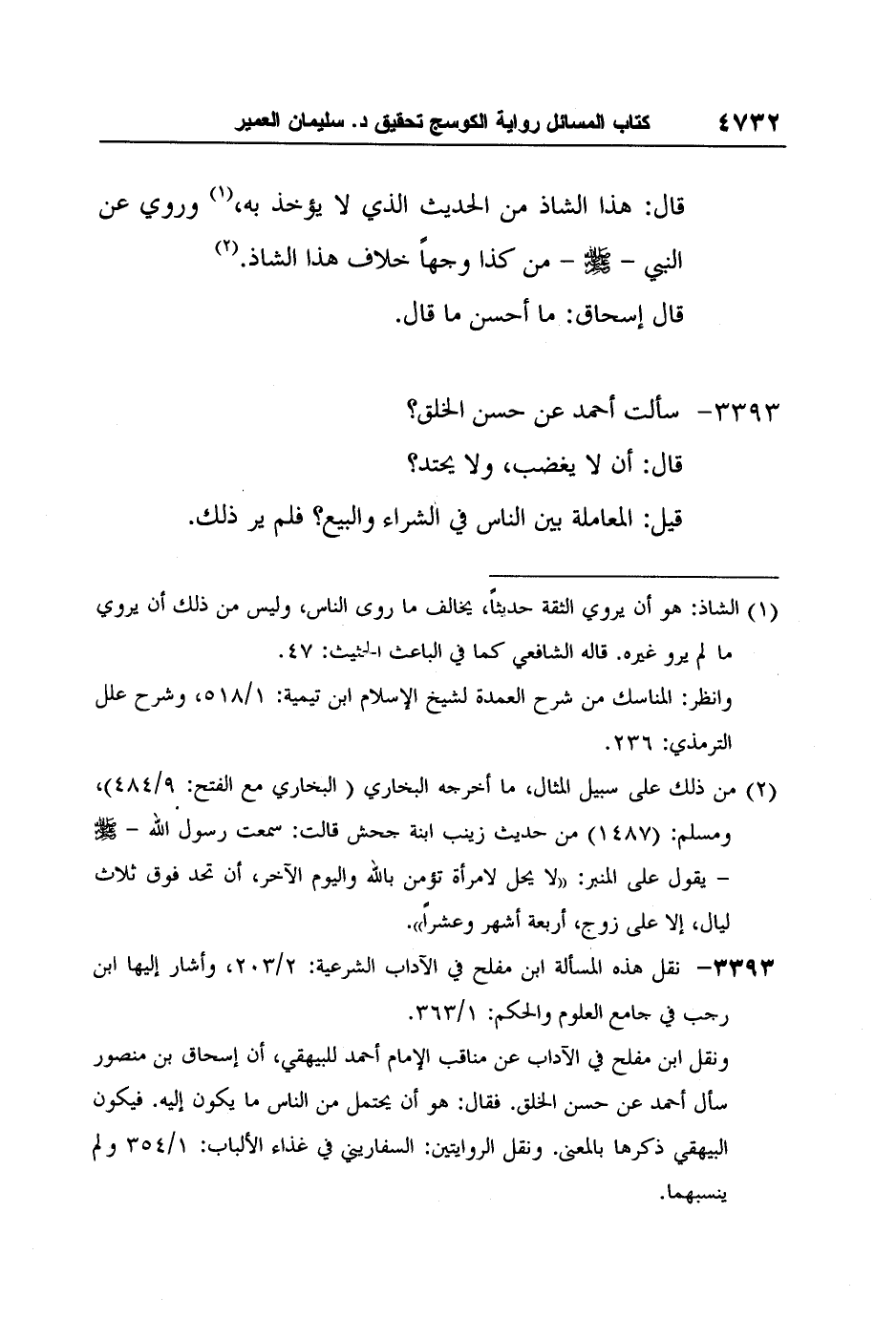 [3393-*] نقل هذه المسألة ابن مفلح في الآداب الشرعية: 2/203، وأشار إليها ابن رجب في جامع العلوم والحكم: 1/363.