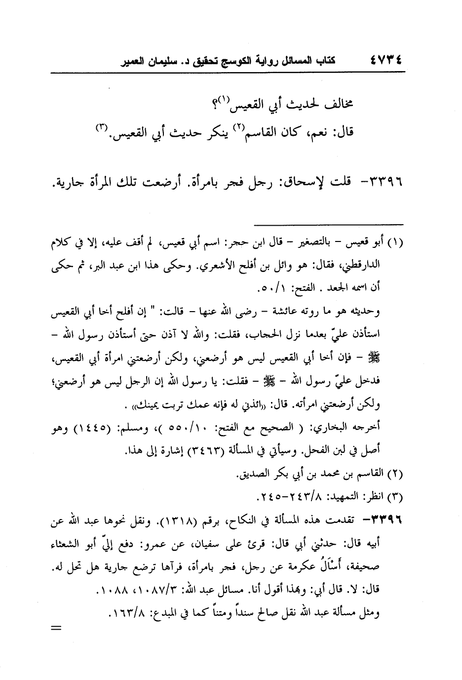 [3396-*] قلت لإسحاق: رجل فجر بامرأة. أرضعت تلك المرأة جارية.