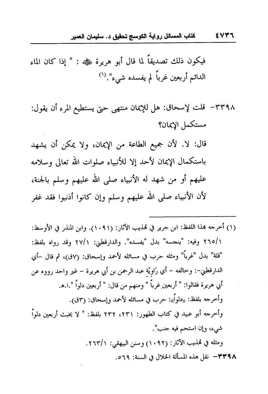 [3398-*] قلت لإسحاق: هل للإيمان منتهى حتى يستطيع المرء أن يقول: مستكمل الإيمان؟