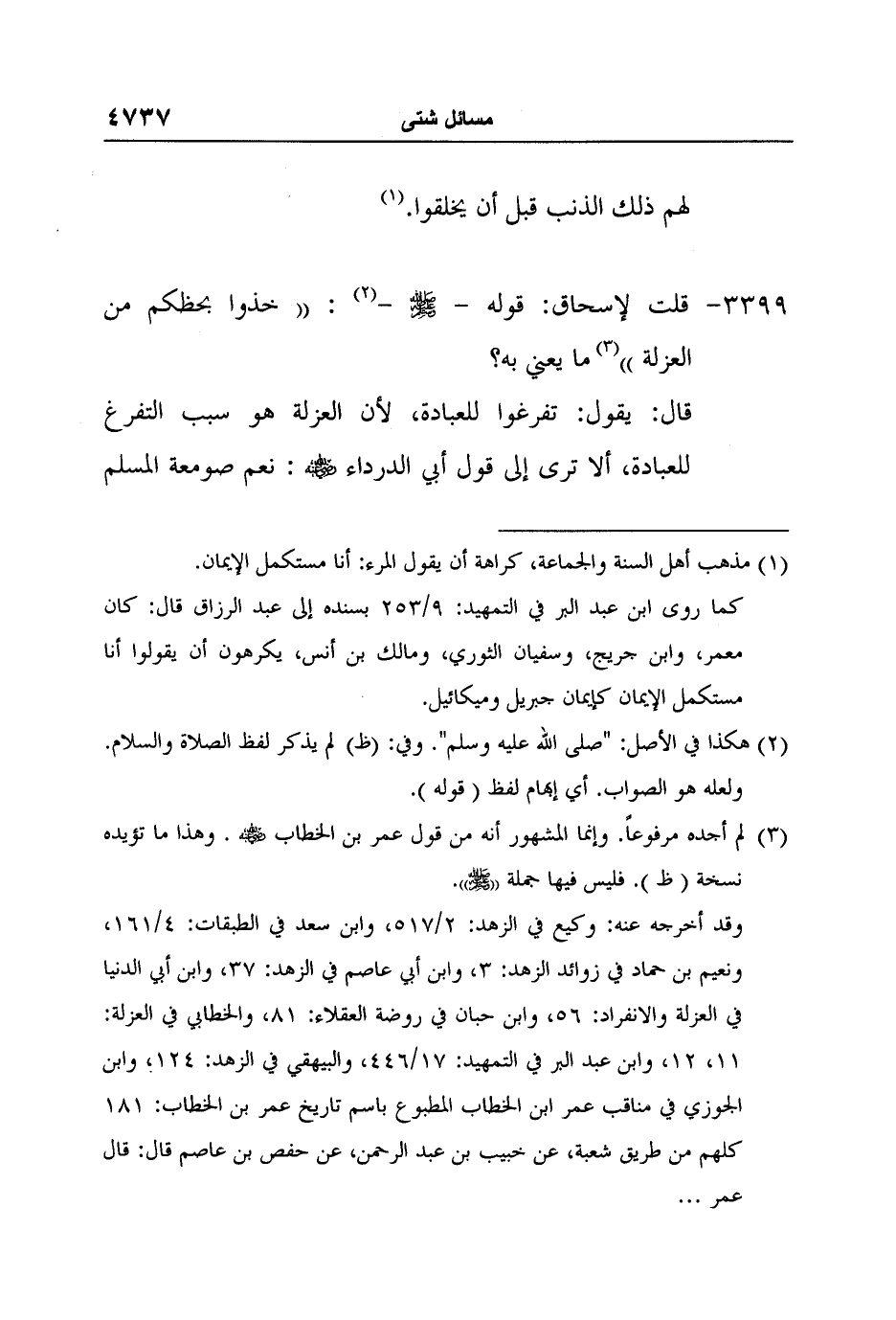 [3399-] قلت لإسحاق: قوله - صلى الله عليه وسلم -2: "خذوا بحظكم من العزلة"3 ما يعني به؟