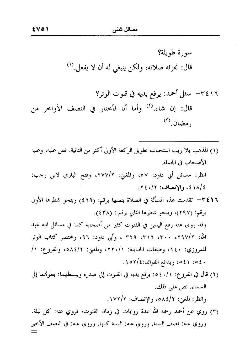 [3416-*] سئل أحمد: يرفع يديه في قنوت الوتر؟