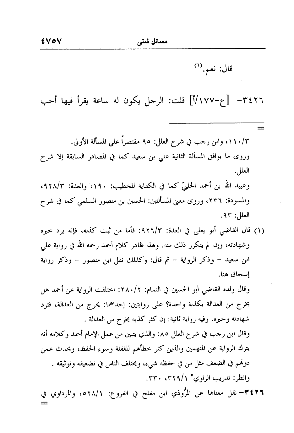 [3426-*] [ع-177/أ] قلت: الرجل يكون له ساعة يقرأ فيها أحب