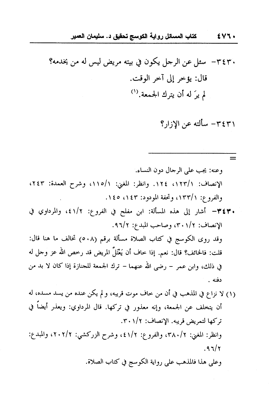 [3430-*] أشار إلى هذه المسألة: ابن مفلح في الفروع: 2/41، والمرداوي في الإنصاف: 2/301، وصاحب المبدع: 2/96.