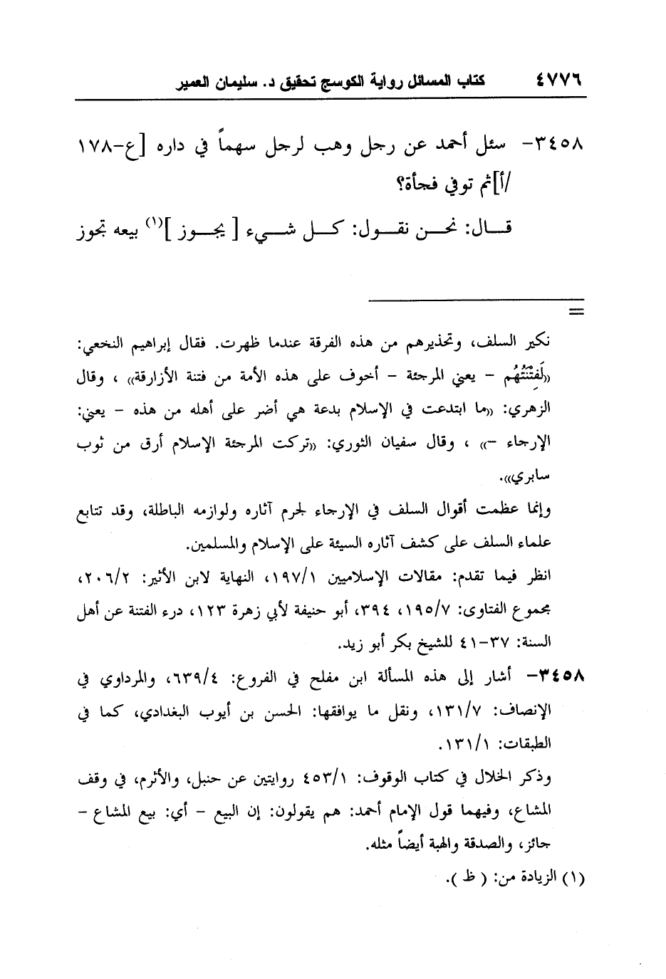 [3458-*] أشار إلى هذه المسألة ابن مفلح في الفروع: 4/639، والمرداوي في الإنصاف: 7/131، ونقل ما يوافقها: الحسن بن أيوب البغدادي، كما في الطبقات: 1/131.