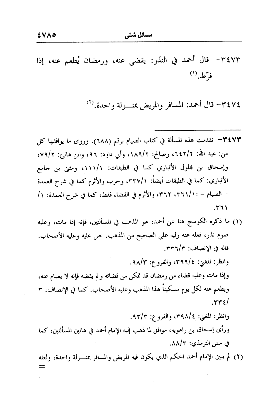 [3474-] قال أحمد: المسافر والمريض بمنزلة واحدة.2