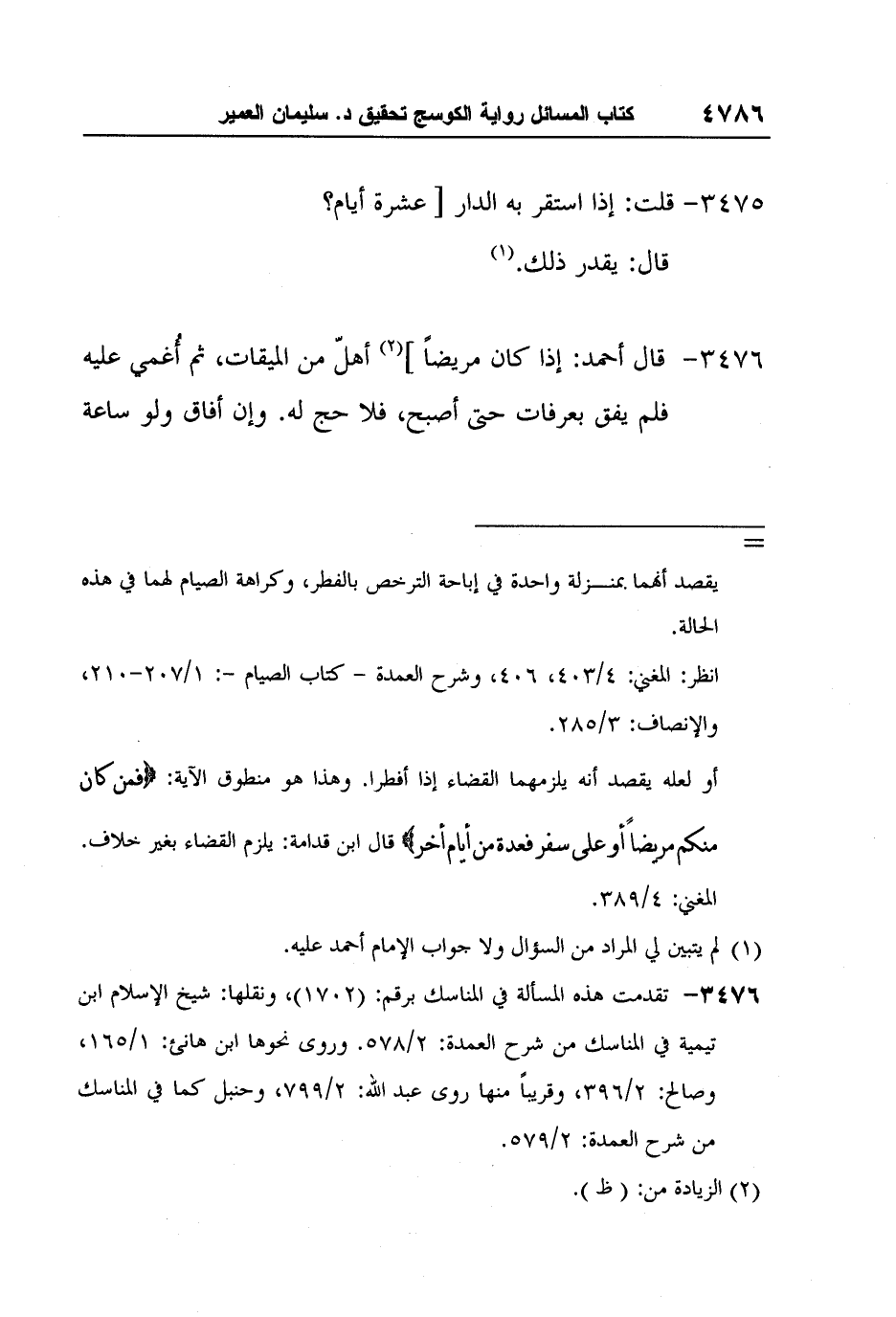 [3476-*] تقدمت هذه المسألة في المناسك برقم: (1702) ، ونقلها: شيخ الإسلام ابن تيمية في المناسك من شرح العمدة: 2/578. وروى نحوها ابن هانئ: 1/165، وصالح: 2/396، وقريباً منها روى عبد الله: 2/799، وحنبل كما في المناسك من شرح العمدة: 2/579.