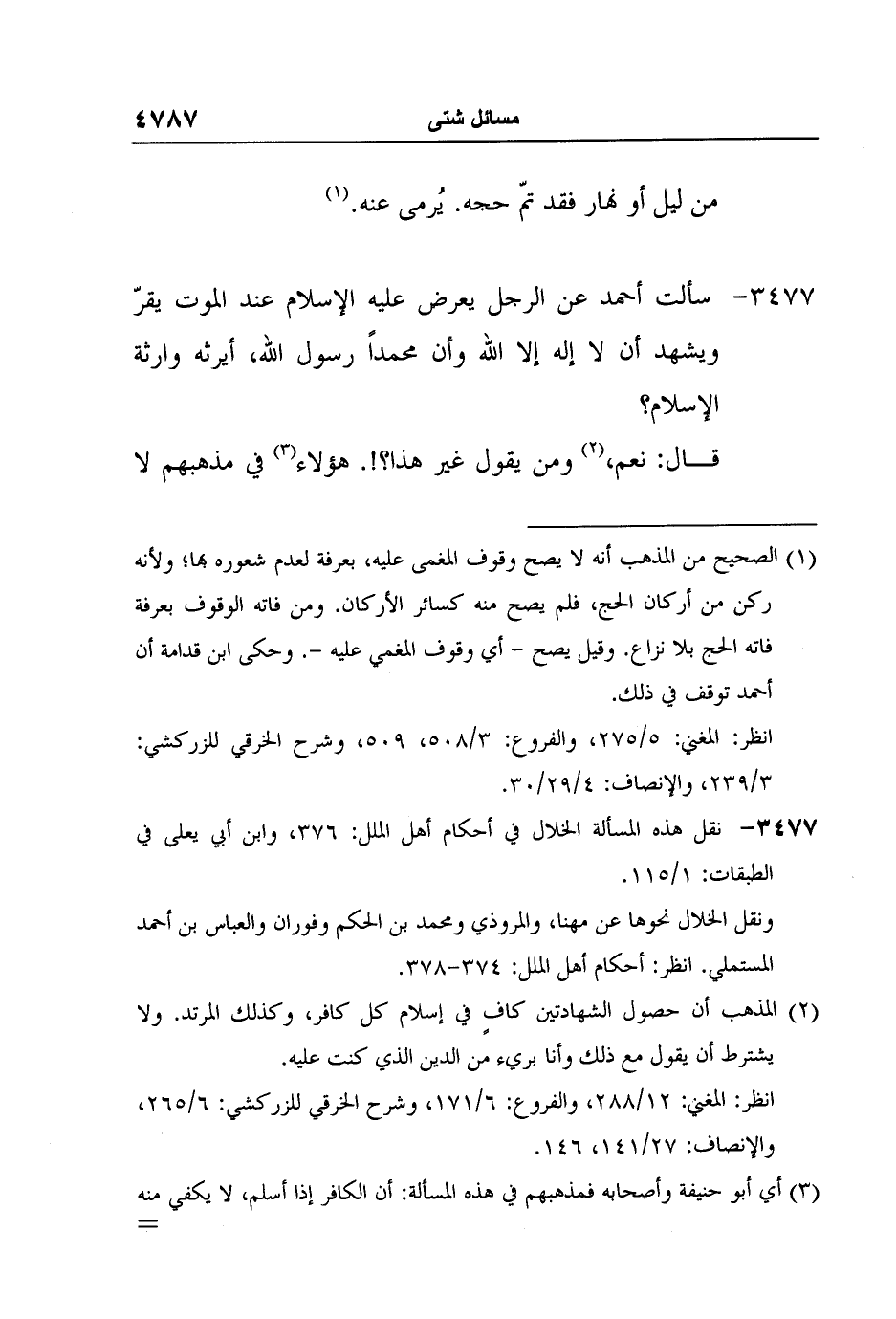 [3477-*] نقل هذه المسألة الخلال في أحكام أهل الملل: 376، وابن أبي يعلى في الطبقات: 1/115.