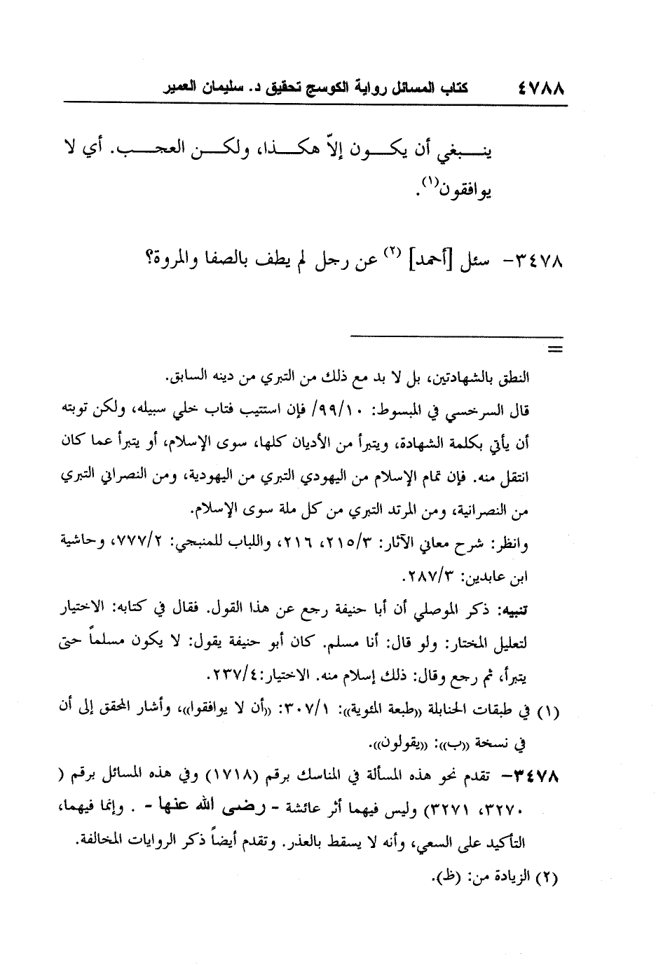[3478-*] سئل [أحمد] 2 عن رجل لم يطف بالصفا والمروة؟