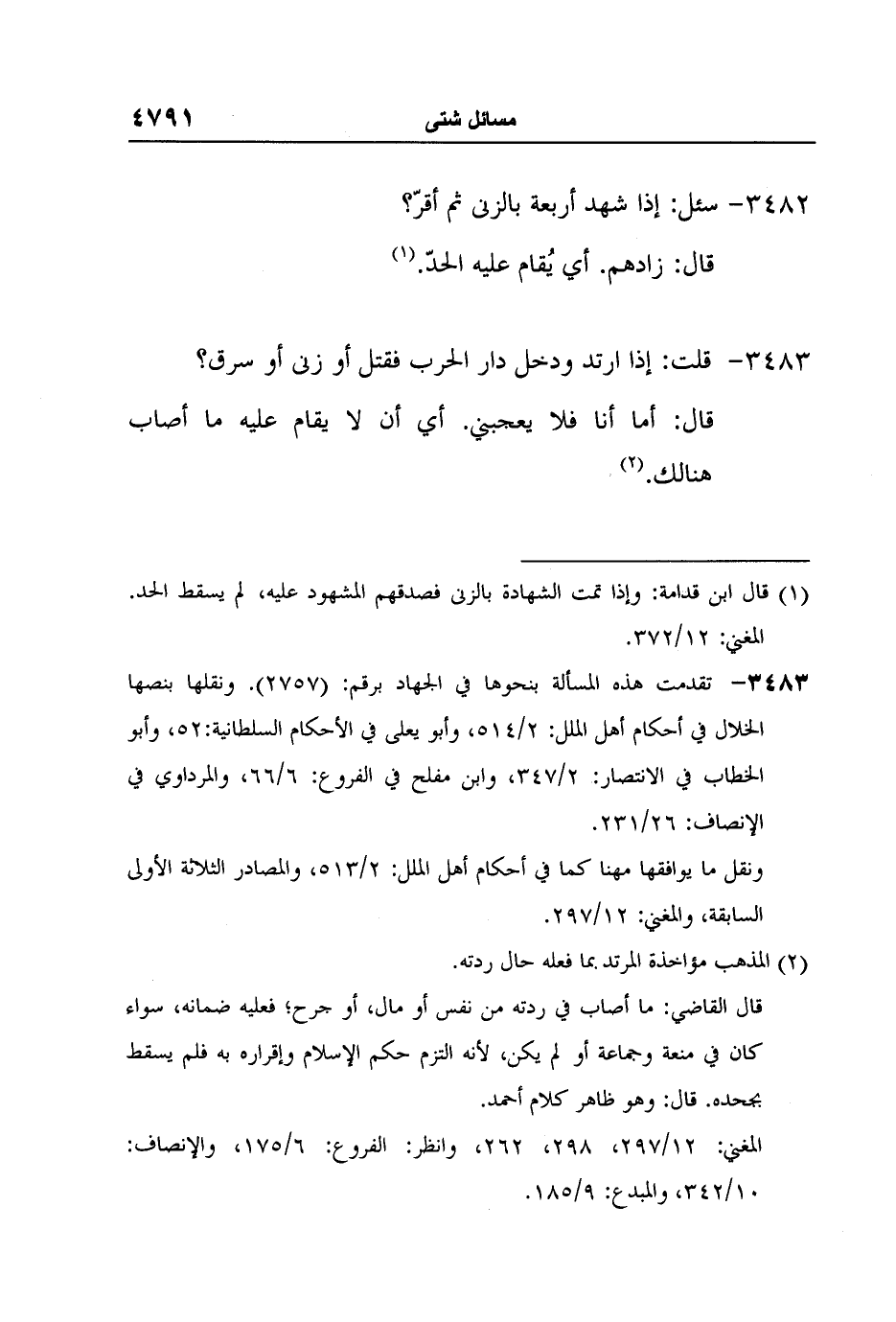 [3483-*] تقدمت هذه المسألة بنحوها في الجهاد برقم: (2757) . ونقلها بنصها الخلال في أحكام أهل الملل: 2/514، وأبو يعلى في الأحكام السلطانية:52، وأبو الخطاب في الانتصار: 2/347، وابن مفلح في الفروع: 6/66، والمرداوي في الإنصاف: 26/231.
