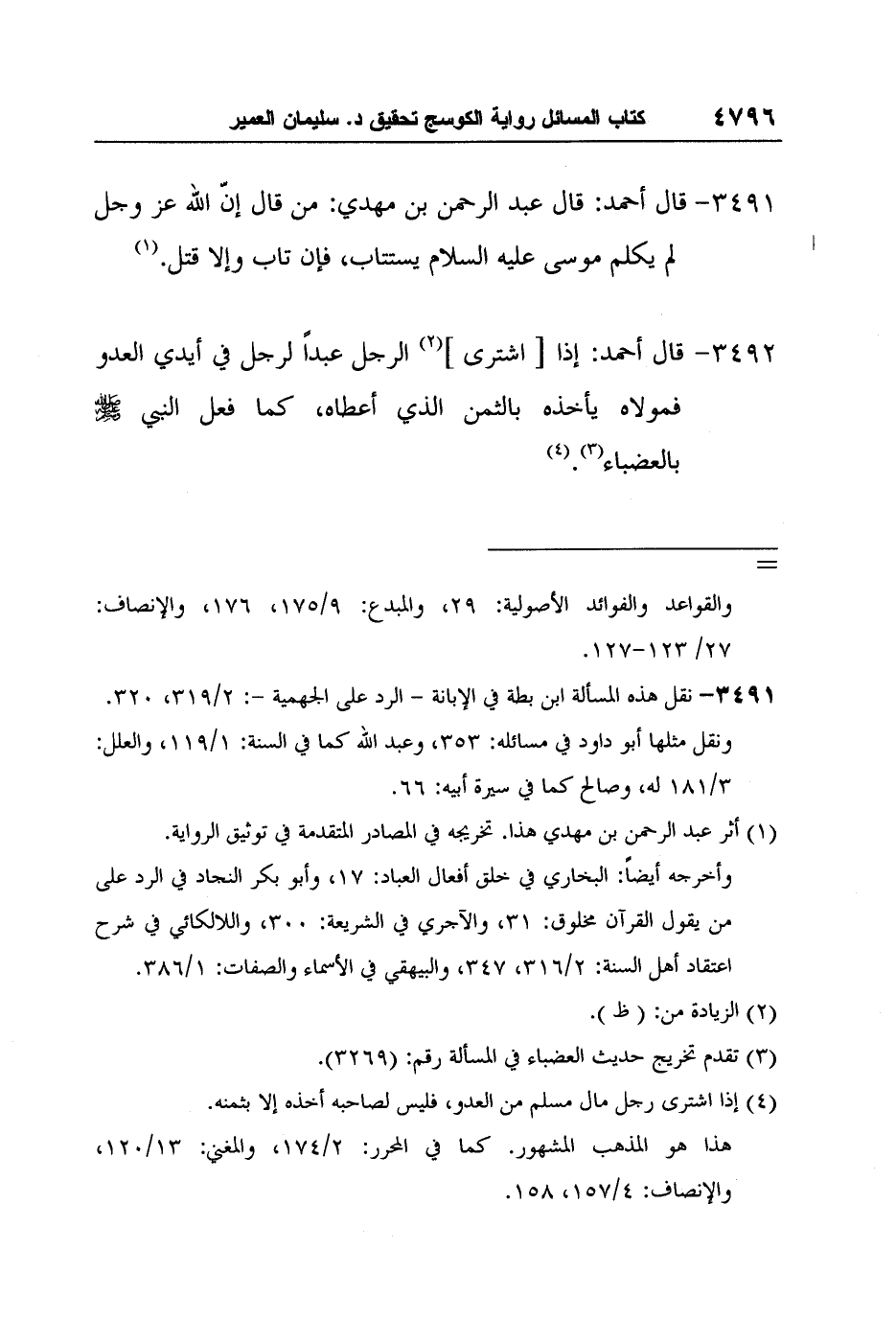 [3491-*] قال أحمد: قال عبد الرحمن بن مهدي: من قال إنّ الله عز وجل لم يكلم موسى عليه السلام يستتاب، فإن تاب وإلا قتل.1