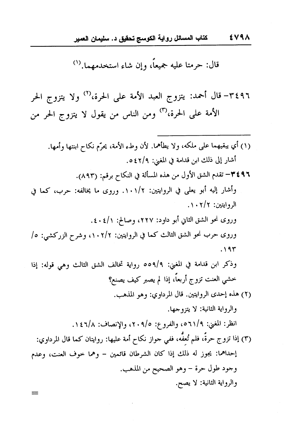 [3496-*] قال أحمد: يتزوج العبد الأمة على الحرة،2 ولا يتزوج الحر الأمة على الحرة،3 ومن الناس من يقول لا يتزوج الحر من
