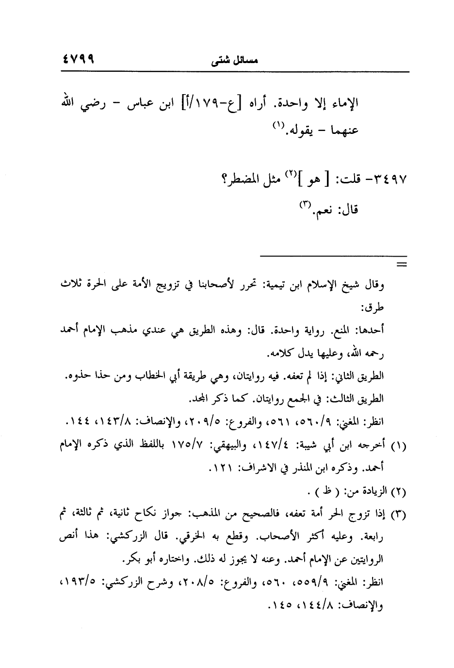 انظر: المغني: 9/559، 560، والفروع: 5/208، وشرح الزركشي: 5/193، والإنصاف: 8/144، 145.