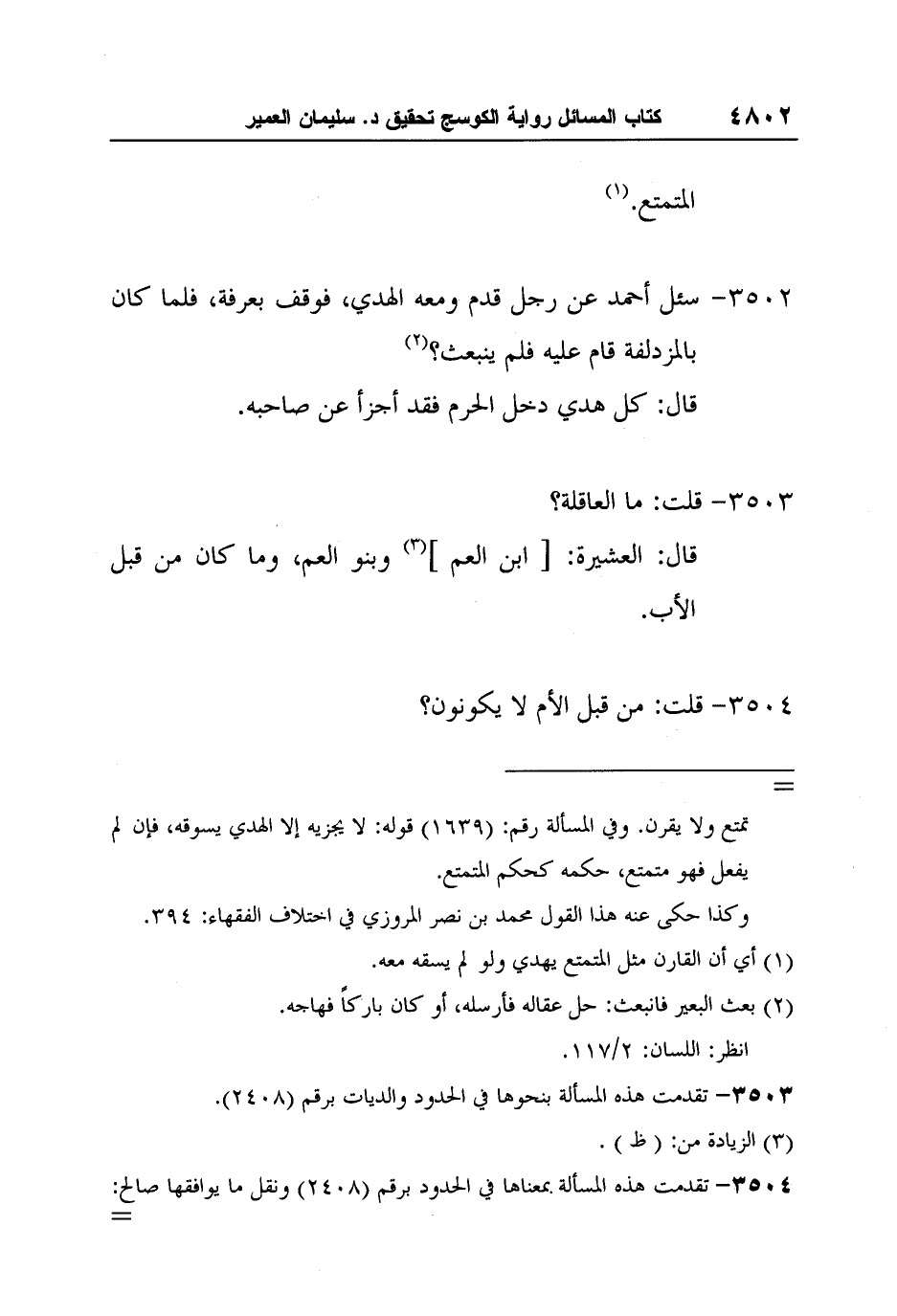 [3502-] سئل أحمد عن رجل قدم ومعه الهدي، فوقف بعرفة، فلما كان بالمزدلفة قام عليه فلم ينبعث؟ 2