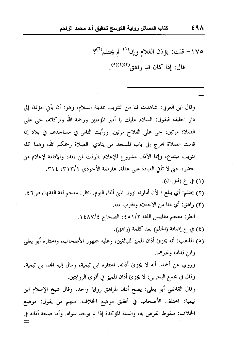 [175-] قلت: يؤذن الغلام وإن1 لم يحتلم2؟