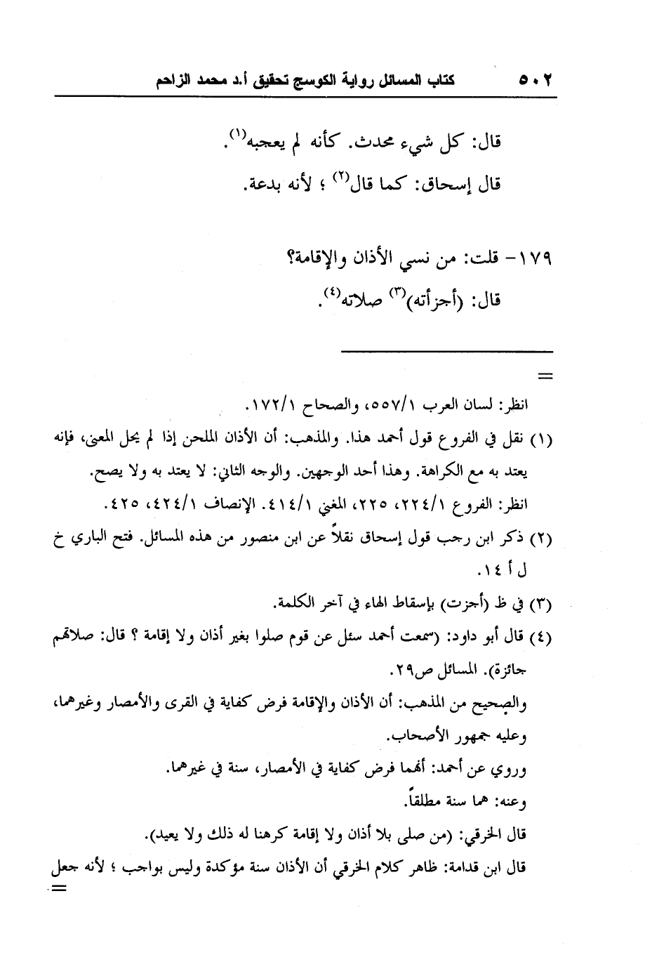 2 ذكر ابن رجب قول إسحاق نقلاً عن ابن منصور من هذه المسائل. فتح الباري خ ل أ 14.