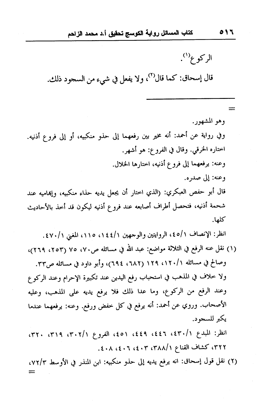 1 نقل عنه الرفع في الثلاثة مواضع: عبد الله في مسائله ص70، 75 (253، 269) ، وصالح في مسائله 1/120، 129 (682، 694) ، وأبو داود في مسائله ص33.