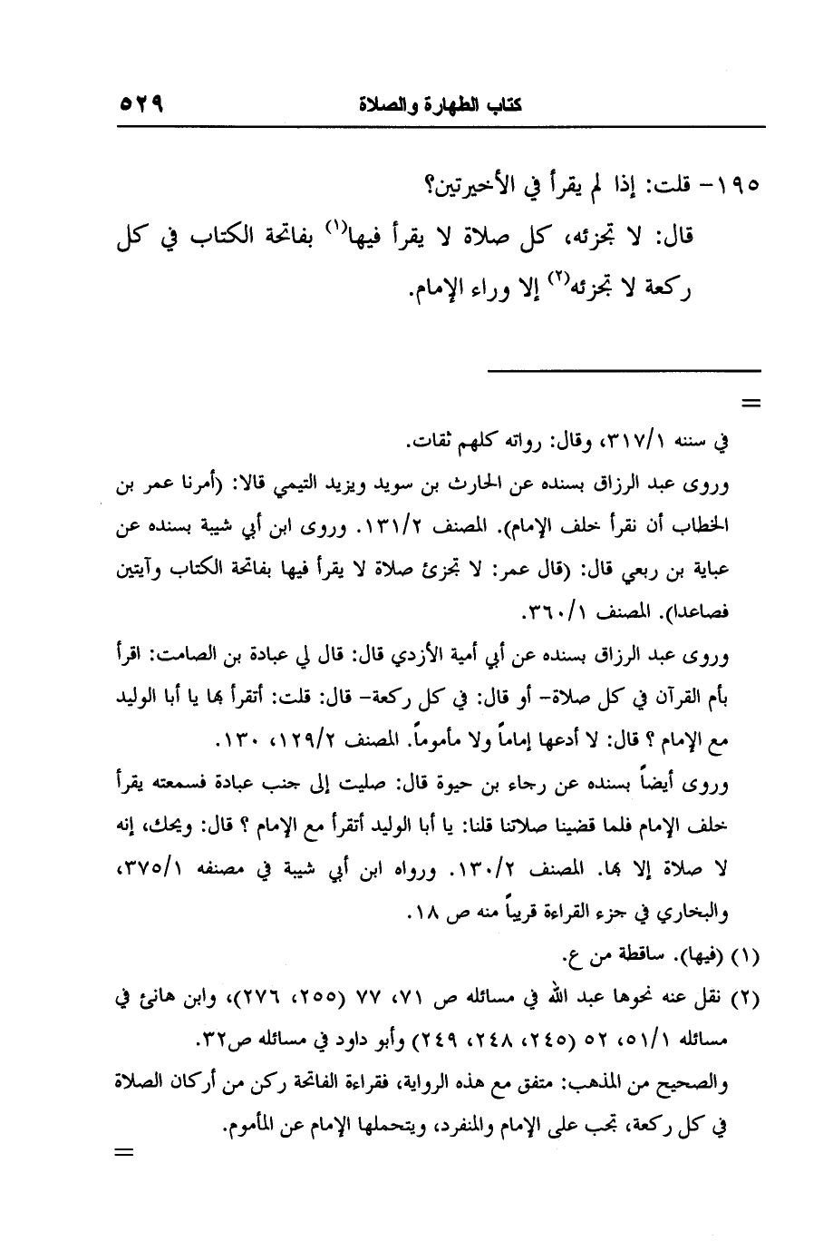 2 نقل عنه نحوها عبد الله في مسائله ص 71، 77 (255، 276) ، وابن هانئ في مسائله 1/51، 52 (245، 248، 249) وأبو داود في مسائله ص32.