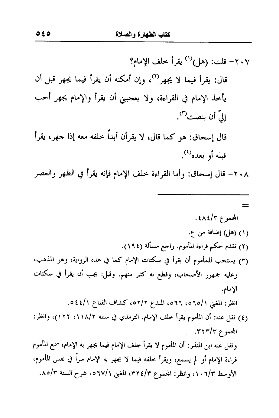 [208-] قال إسحاق: وأما القراءة خلف الإمام فإنه يقرأ في الظهر والعصر