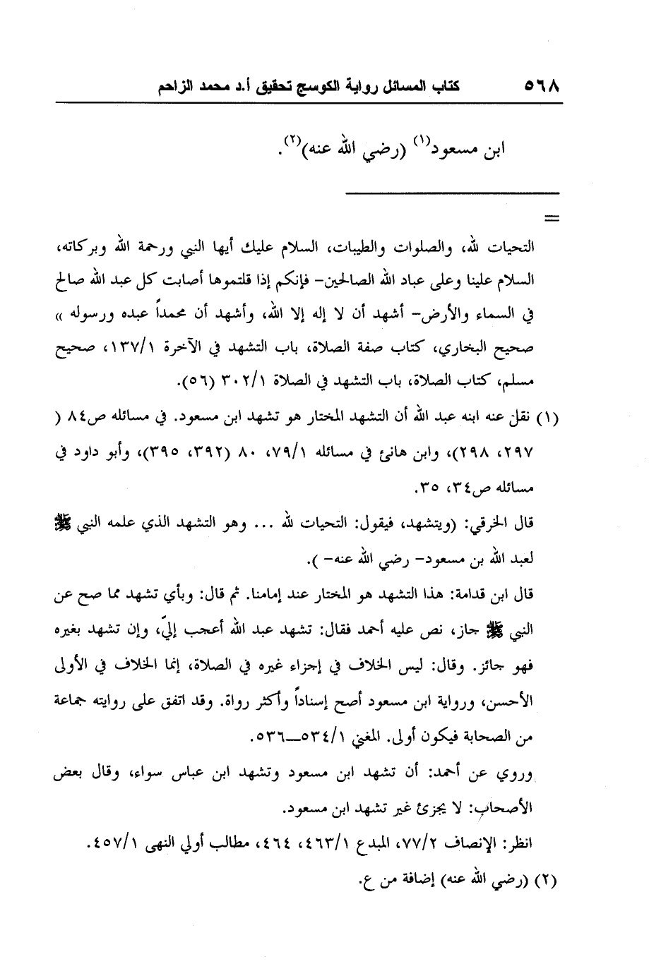 1 نقل عنه ابنه عبد الله أن التشهد المختار هو تشهد ابن مسعود. في مسائله ص84 (297، 298) ، وابن هانئ في مسائله 1/79، 80 (392، 395) ، وأبو داود في مسائله ص34، 35.