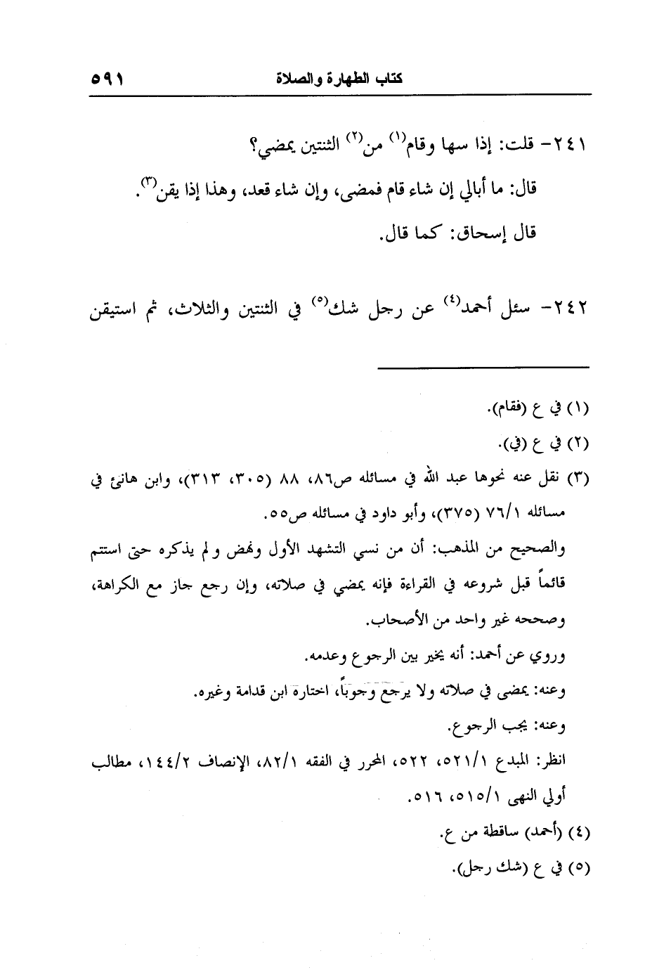 [242-] سئل أحمد4 عن رجل شك5 في الثنتين والثلاث، ثم استيقن