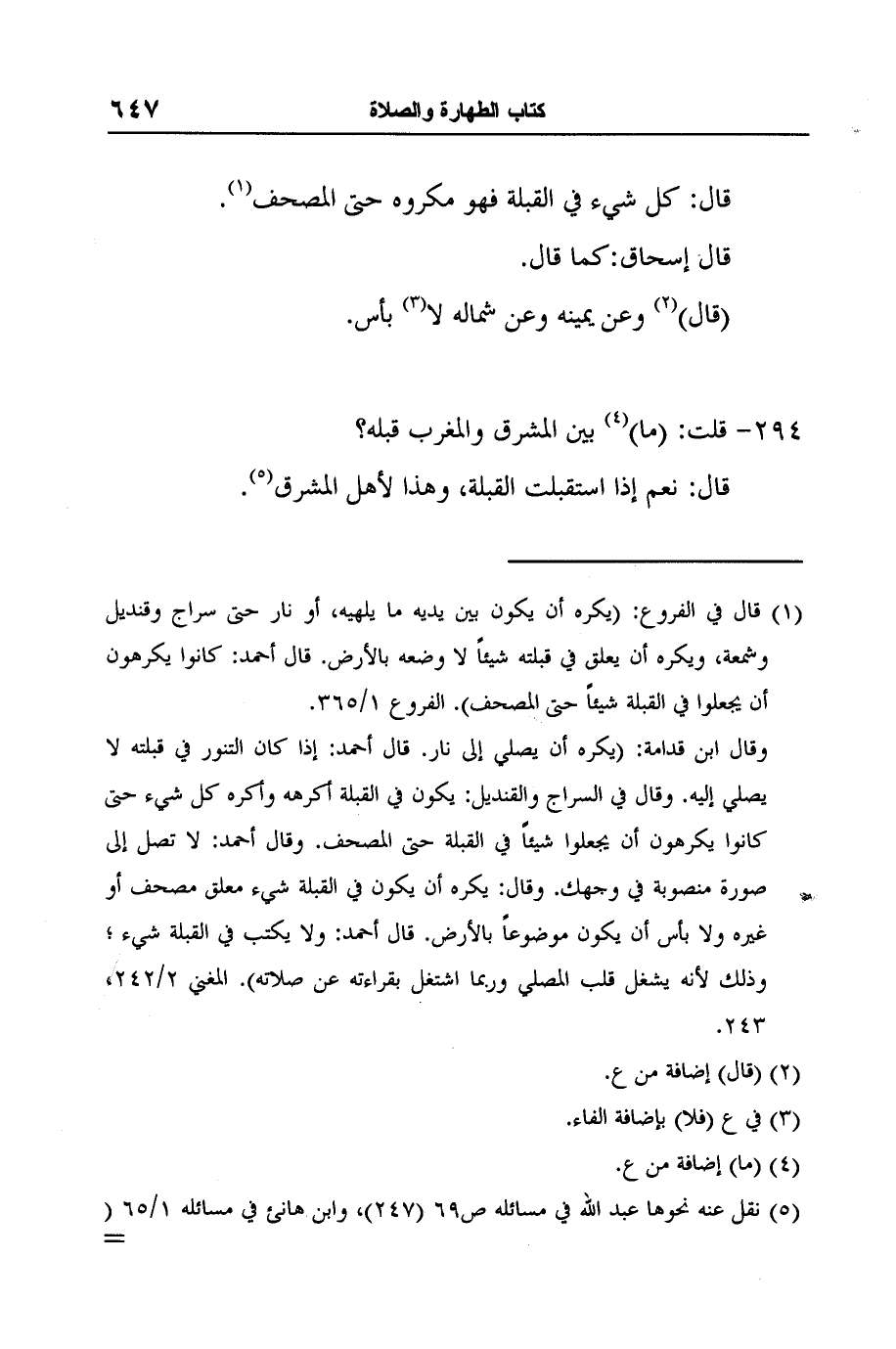 5 نقل عنه نحوها عبد الله في مسائله ص69 (247) ، وابن هانئ في مسائله 1/65 (322) وأبو داود في مسائله ص 45.