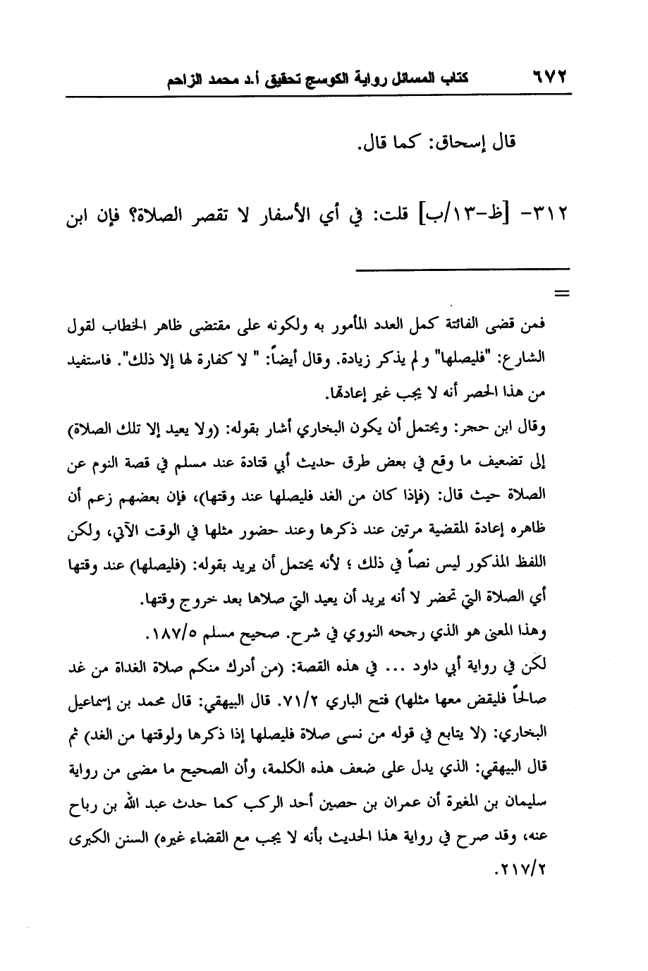 [312-] [ظ-13/ب] قلت: في أي الأسفار لا تقصر الصلاة؟ فإن ابن
