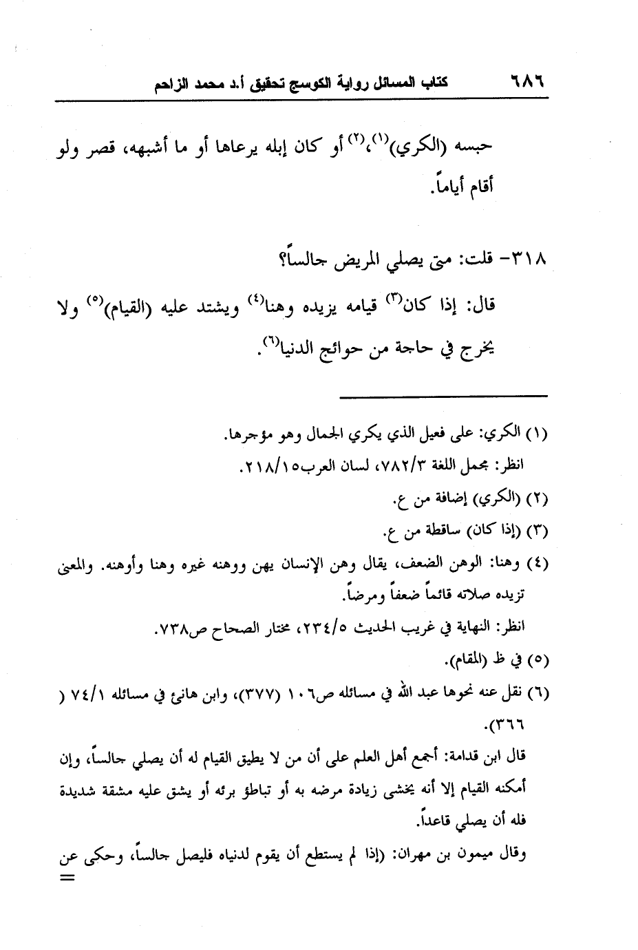 قال: إذا كان3 قيامه يزيده وهنا4 ويشتد عليه (القيام) 5 ولا يخرج في حاجة من حوائج الدنيا6.