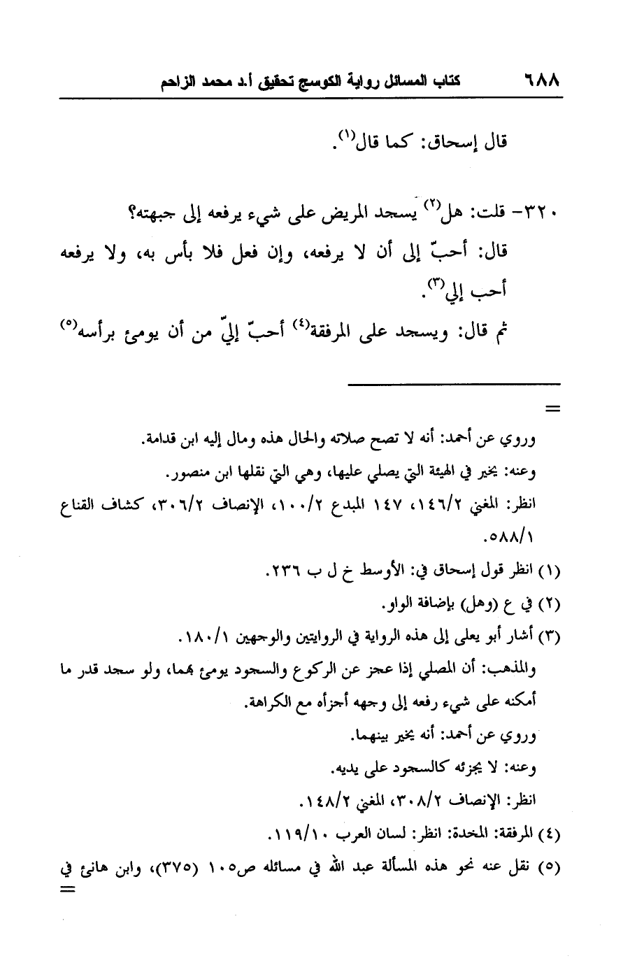 4 نقل عنه نحو هذه المسألة عبد الله في مسائله ص105 (375) ، وابن هانئ في مسائله 1/74 (367) .
