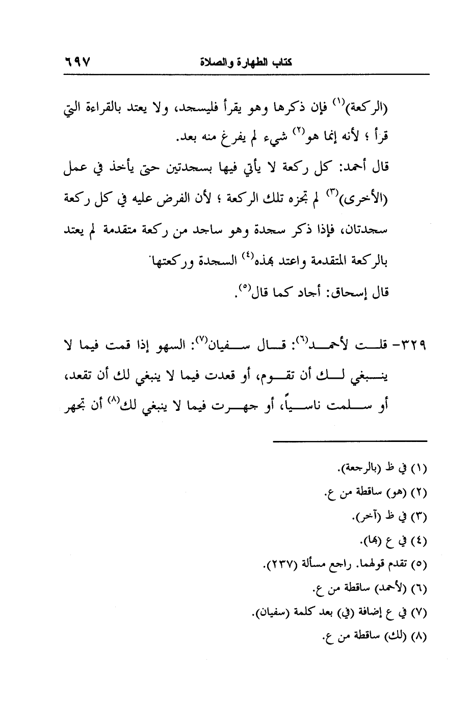 [329-] قلت لأحمد6: قال سفيان7: السهو إذا قمت فيما لا ينبغي لك أن تقوم، أو قعدت فيما لا ينبغي لك أن تقعد، أو سلمت ناسياً، أو جهرت فيما لا ينبغي لك8 أن تجهر
