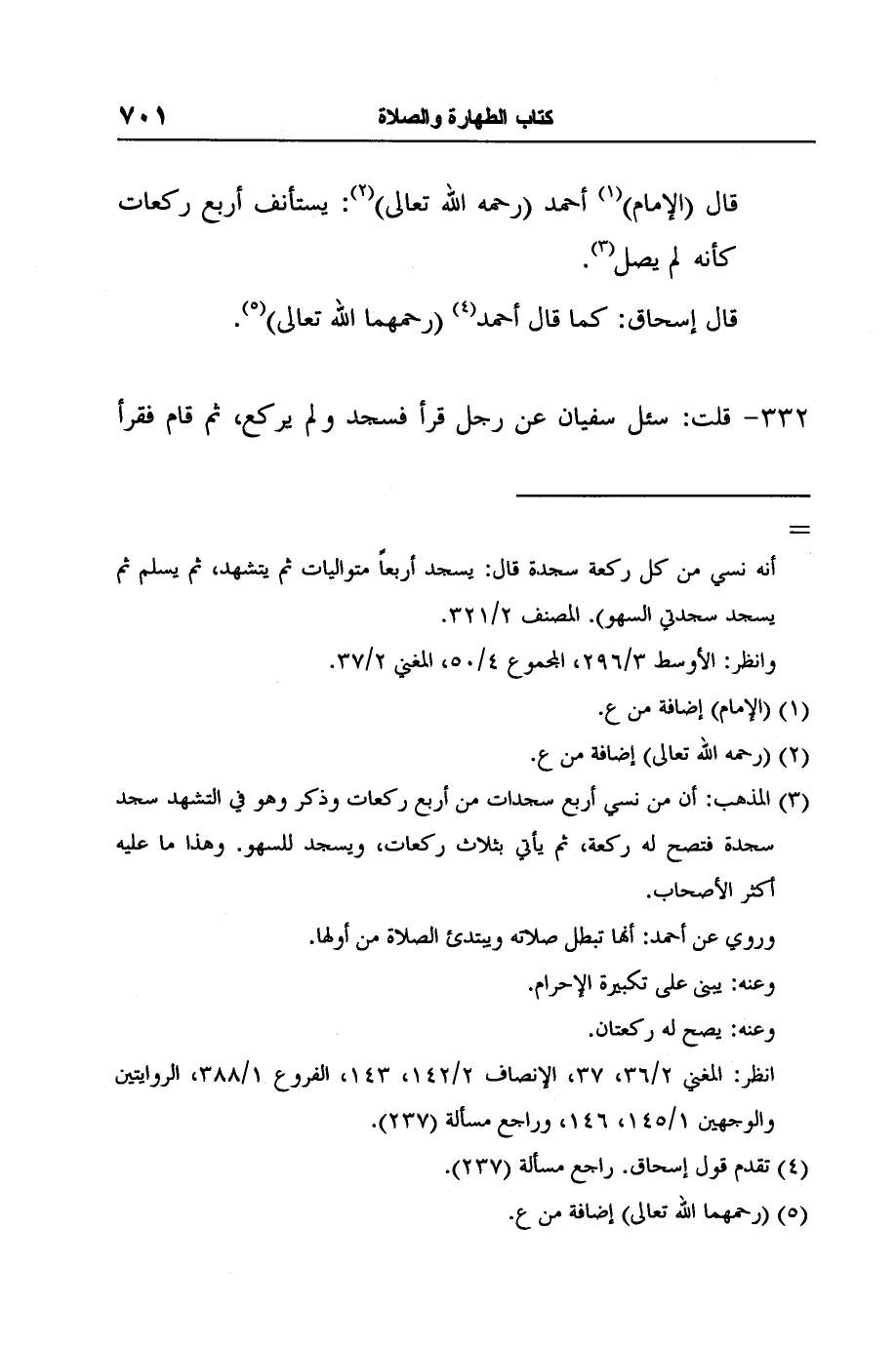 [332-] قلت: سئل سفيان عن رجل قرأ فسجد ولم يركع، ثم قام فقرأ