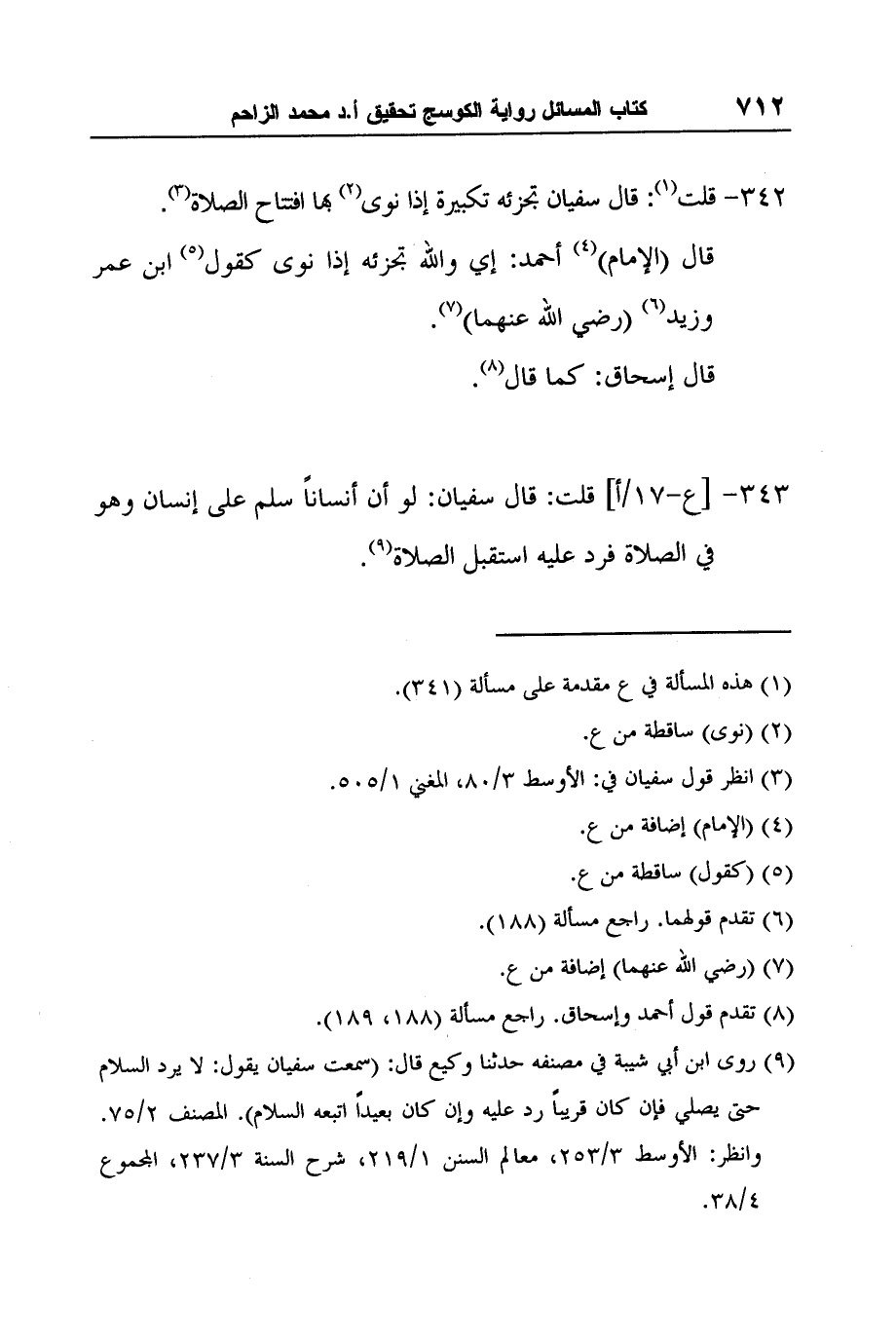 [343-] [ع-17/أ] قلت: قال سفيان: لو أن أنساناً سلم على إنسان وهو في الصلاة فرد عليه استقبل الصلاة9.