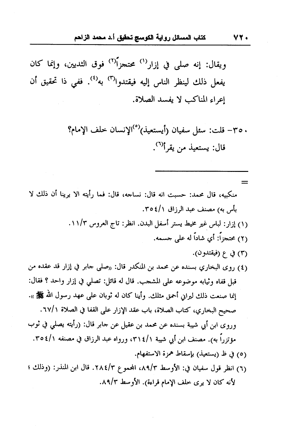 [350-] قلت: سئل سفيان (أيستعيذ) 5الإنسان خلف الإمام؟